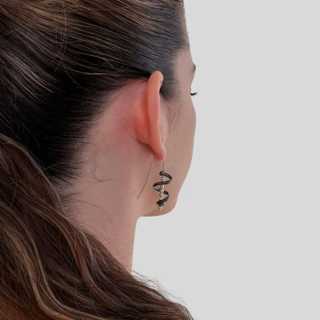 I make everything by hand in my Bothell, Washington studio — two collections, one approach. Sterling silver, 14k gold filled, and 24k gold keum-boo.