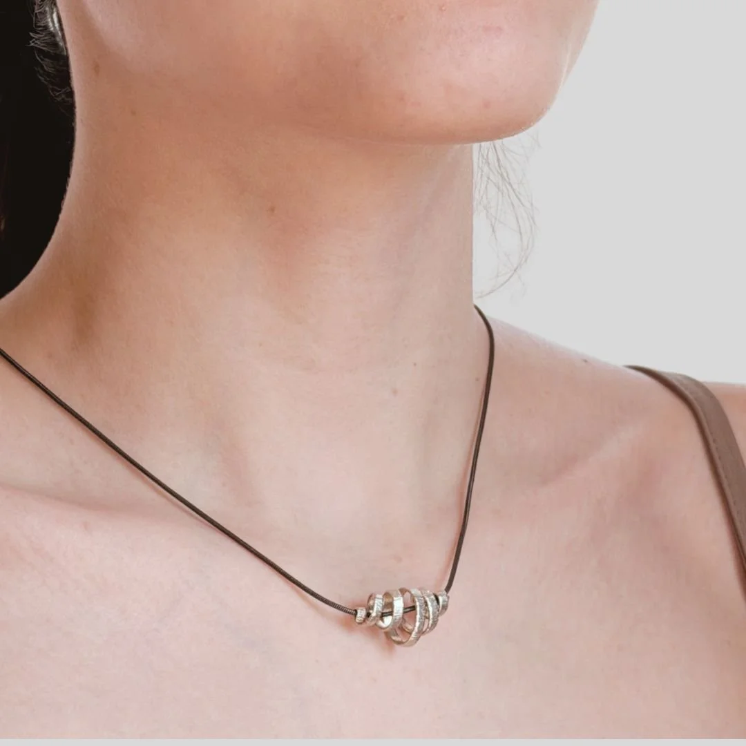 April is lighter layers and more visible skin. The jewelry does more of the work. Texture and clean lines, worn together.